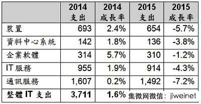 來(lái)源:Gartner預(yù)測(cè)2015年全球IT支出減5.5%