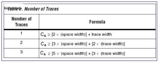 表2:計(jì)算經(jīng)過給定通道面積的走線數(shù)量。(注:Number of Traces: 走線數(shù)量