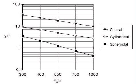 取得共振(X = 0),從正確的半波長縮短之百分比,顯示如下。