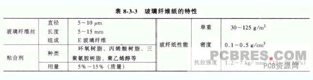 (5) 增強(qiáng)材料CEM-3 采用電子級玻璃纖維布和電子級玻璃纖維紙兩種增強(qiáng)材料。面料的增強(qiáng)材料一般用7628 玻璃纖維布,對一些特殊用途的CEM-3 也采用2116 玻纖布,但會增加產(chǎn)品成本。玻纖布和玻纖紙必須經(jīng)過硅烷偶聯(lián)劑表面處理,以提高耐潮濕性、耐熱性、電氣絕緣性。玻纖紙的強(qiáng)度較低和內(nèi)應(yīng)力很小,其對板材翹曲影響較小,而玻纖布存在編織張力及內(nèi)應(yīng)力殘留、經(jīng)緯紗偏斜等不穩(wěn)定因素,對CEM-3 翹曲影響較大,因此,必須注意玻纖布的經(jīng)、緯紗的編織密度、緯斜等,同時(shí),生產(chǎn)CEM-3 時(shí)須注意面料要同機(jī)同布。芯料的增強(qiáng)材料采用玻璃纖維紙(簡稱玻纖紙,又稱玻璃纖維無紡布、玻璃纖維氈、玻璃紙等) ,它由短切玻纖、粘合劑,用濕式短網(wǎng)抄紙機(jī)按抄紙方法制成,其特性見表8-3-3 。CEM-3 用玻纖紙一般以綜合性能好的環(huán)氧樹脂或丙烯酸樹脂為粘合劑;用聚乙烯醇作粘合劑的玻纖紙,雖然價(jià)格便宜,但是耐熱性、耐水性差,已被淘汰出CEM-3 用玻纖紙之列。